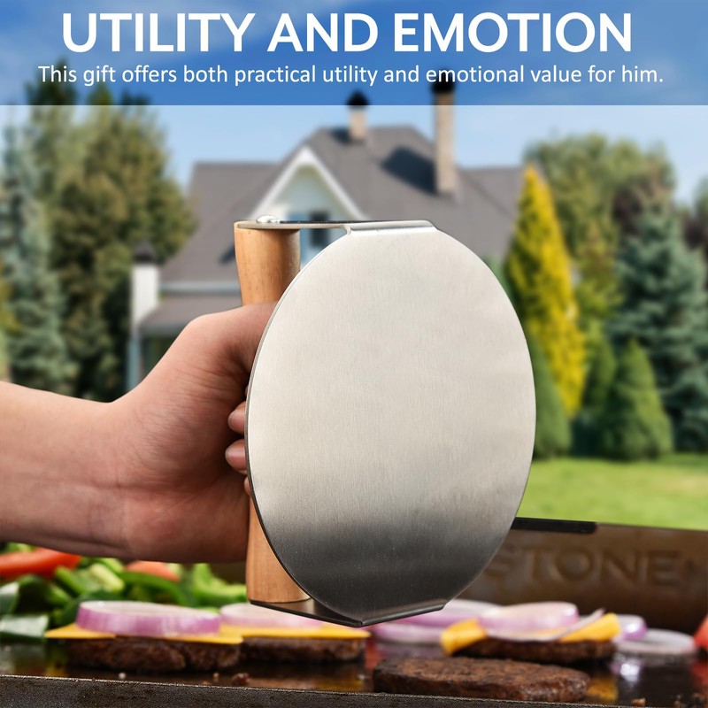 - Perfect Burger Every Time: With its 6.2-inch diameter, this press is ideal for creating beautifully caramelized and juicy burgers by searing in the flavors. It's versatile enough for stovetop grilling, outdoor BBQs, and even making crispy bacon, grilled cheese, or Paninis on a flat stovetop pan.