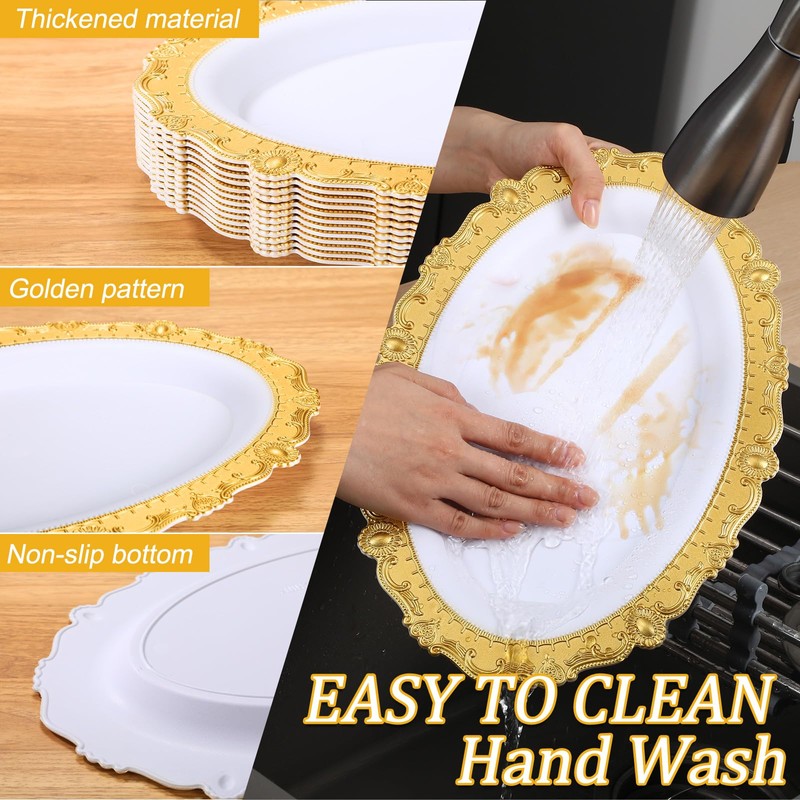 - Reusable Plastic Construction: crafted from quality, heavy plastic, these oval serving platter are built to last; Unlike flimsy disposable plates or fragile ceramics, they are shatterproof, bend-resistant, and designed for long-term use; The thick, durable material ensures stability, making them ideal for serving large dishes like whole roasted chickens or juicy meats without warping or cracking