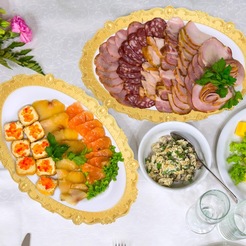 - Floral Gold Rim Design: elevate your table setting with our elegant oval trays featuring a sophisticated floral gold rim and a sleek matte white; The timeless vintage-style pattern adds a touch of grace and is for weddings, upscale restaurants, bridal showers and holiday gatherings