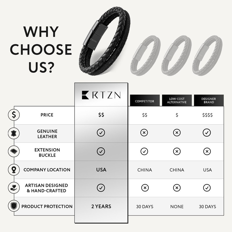 • Quality Assurance & Support: At RTZN, your happiness is our top priority. If our men's bracelets don't meet your expectations, just reach out and we'll make it right! We are dedicated to providing high-quality products and exceptional customer service. With RTZN, you're not just purchasing a bracelet; you're investing in unparalleled quality, craftsmanship, and exceptional after-sales support.