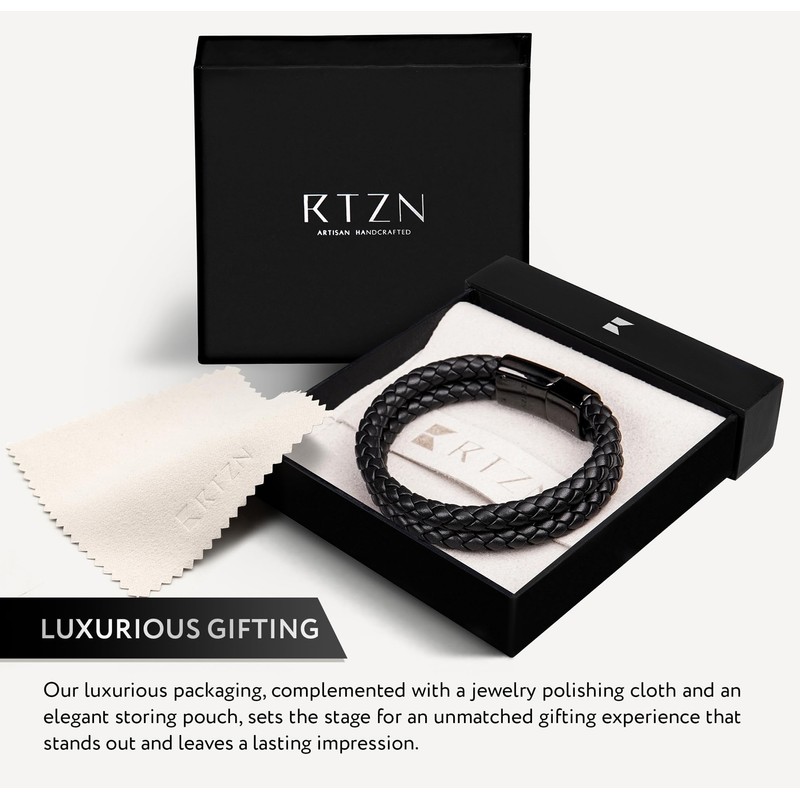 • Gift Ready Packaging: Our men black bracelet will arrive in a luxurious gift box, complete with a storing pouch and polishing cloth, making it a perfect present for any occasion. Whether it's a birthday, anniversary, holiday, or just because, gift the RTZN experience and make every moment extraordinary!