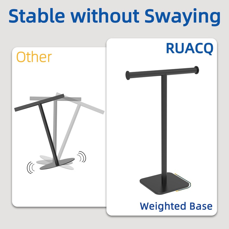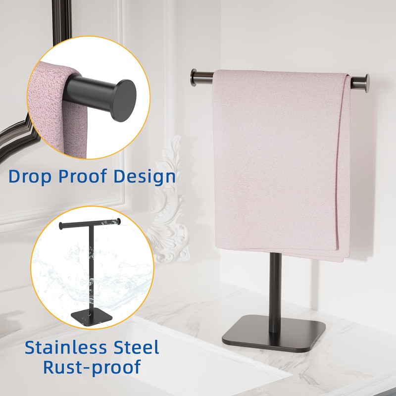 The weighted base of the hand holder stand makes it stand stables, and the non-slip rubber mats under the base is not only non-slip, but also prevents scratches, countertop Towel Stand can not only hang 1 or more towels, but also hang small ornaments