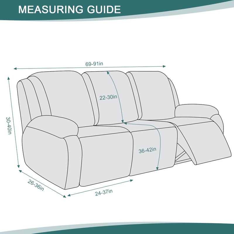 - 【PERFECT FIT】: The bottom elastic band is designed to fit the recliner perfectly. This reclining couch cover also adds elastic belts at the back corner of the seat and the armrest, and cooperates with the fixed buckle to enhance the anti-slip performance of the recliner cover, keeping the cover in place without moving. Fits recliners with seat total widths between 69-91 inches. Please refer to the size picture before purchasing.