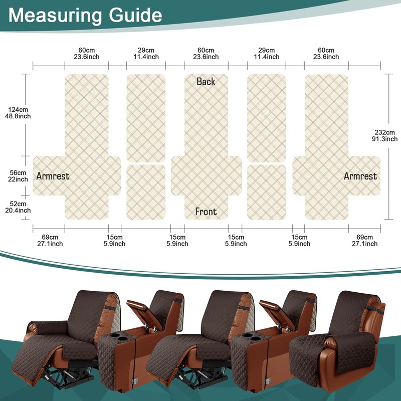- PERFECT FIT: Great coverage for your recliner, protect your furniture from dirt, daily wear and tear. Fits each piece with a seat width of 23.6 in for loveseat recliners and 11.4 infor consoles. Please measure your loveseat according to the pictures on the product page