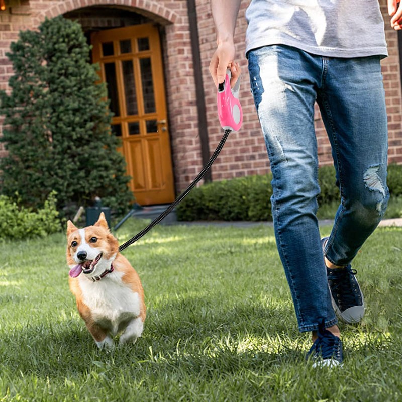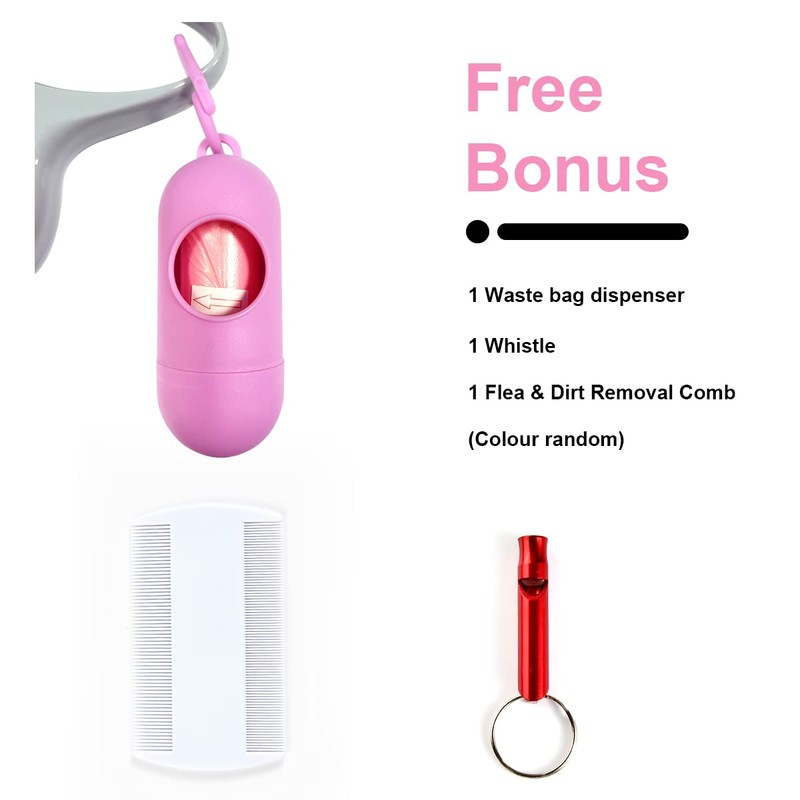 - 【Package Includes】You will get:1 retractable pink dog leash + 1 pet training whistle + 1 dog comb + 1 portable garbage bag; a comprehensive solution for all your outdoor dog walks.