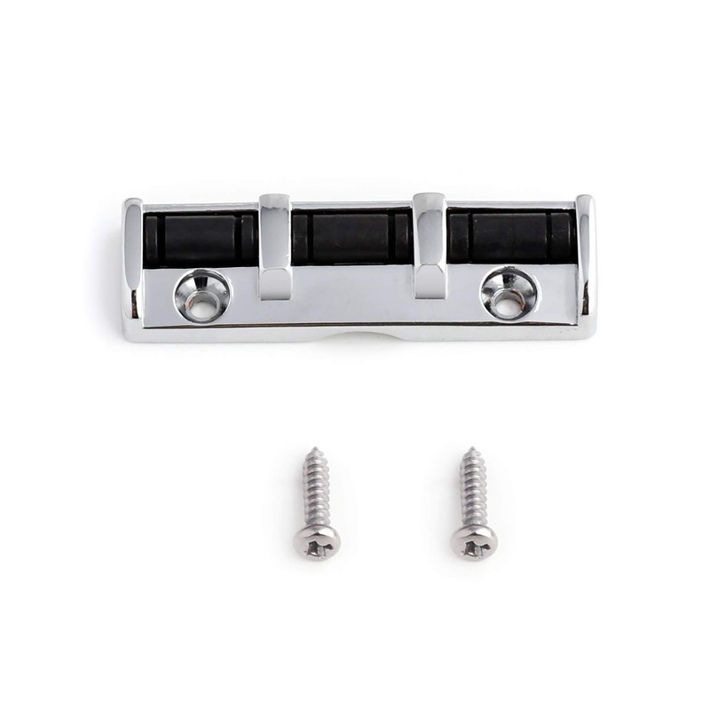 - This is a chrome roller nut for Fender Stratocaster or Telecaster style electric guitars. Well finished cast base with three steel rollers.