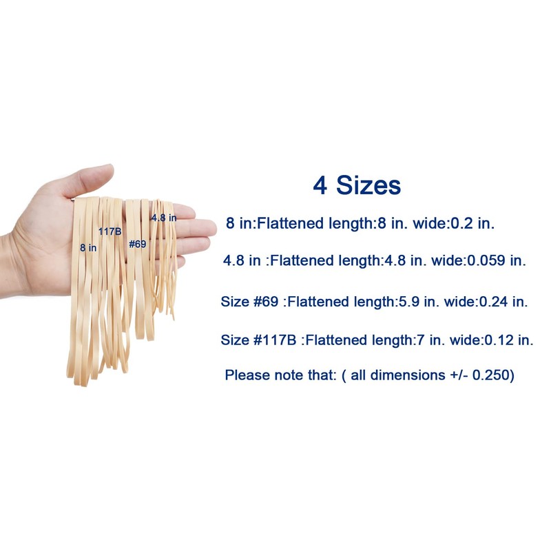 Rubber Bands Assorted Sizes 0.5lbs 4 sizes large rubber bands heavy duty Elastic Bands Tactical rubber band for Office supplies size#69,size#117B,size#8in,size(4-4/5" x 1/16")