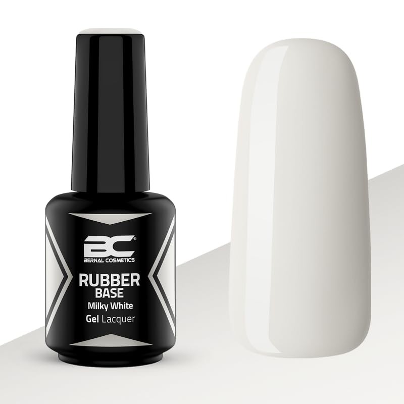 Rubber Base Milky White 15 ml | Milk White | Semi-Permanent Varnish, Self-Levelling and Durable, Strengthening Nails, Bernal Cosmetics