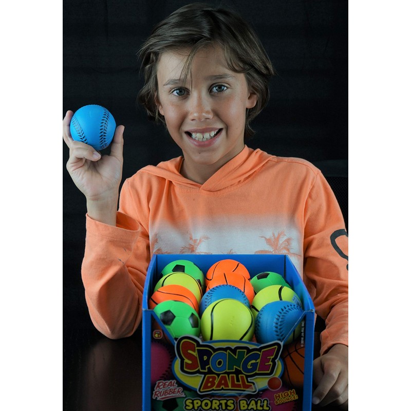 • 12 PACK OF HIGH BOUNCE RUBBER SPORTS BALLS - 2.5 inch in diameter. Small bouncy balls. Comes in random assortment of colorful styles (Blue Baseball, Yellow Tennis Ball, Orange Basketball, and Green Soccer Ball). Plus 1 Exclusive collectible bouncy ball.