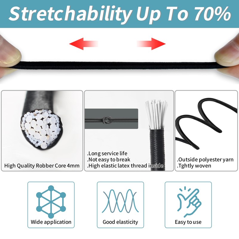 - 【Ultimate Quality Material】: Rubber rope inside is made of environmentally friendly, high-quality latex with good elasticity, durable and stable load capacity. The outside is made of polyester, tarpaulin rope can be used in harsh environments, which is weatherproof and UV-resistant