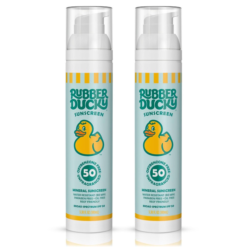 Rubber Ducky | Mineral Sunscreen, Vegan SPF 50 Sunscreen, Water-Resistant Face and Body Sunscreen | Broad Spectrum Mineral Sunscreen (Great Alternative for Moisturizing Sunblock) | 3.4 Oz, Pack of 2