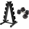 - Signature Fitness Rubber Encased Hex Dumbbell, 25LB Pair with A-Frame Rack