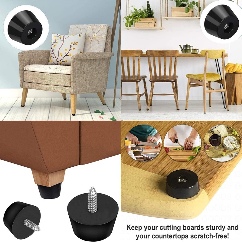 - Special feature: each round rubber feet is equipped with a self-tapping screw for assembly, compared with the self-adhesive round rubber feet, our products allow the round rubber feet to install more stably, providing great protection for your furniture and floor.