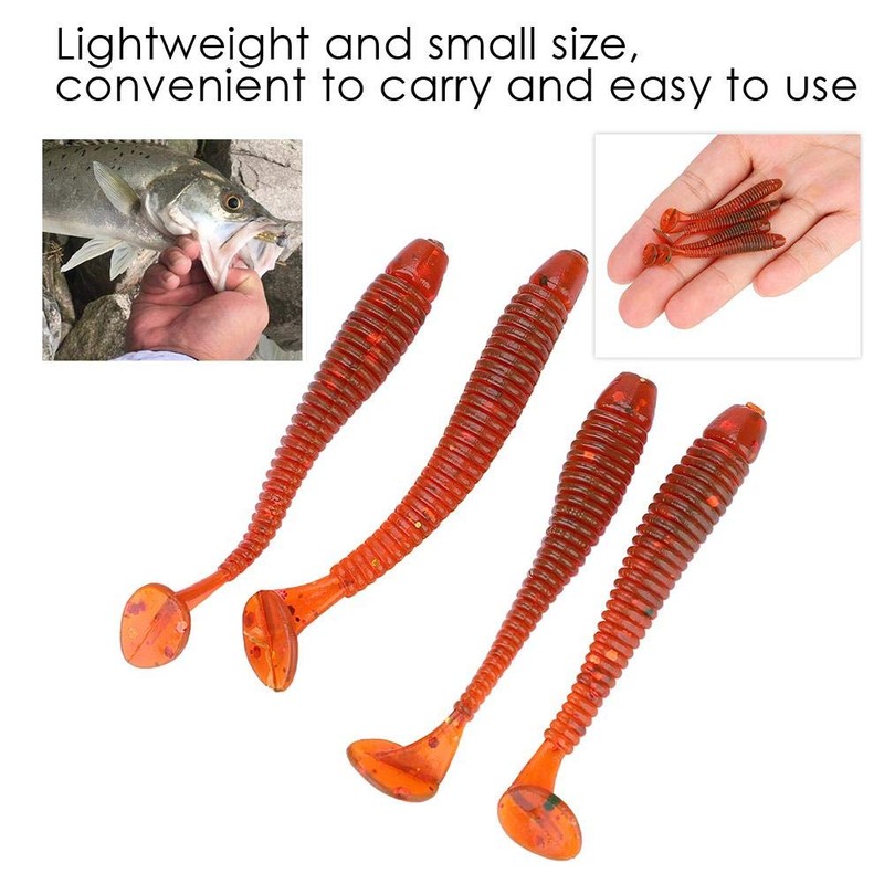 - 【Feature】: The fish bait when pulled into the water is like a living creature, effectively attracting fish to bite. The design with a single T-tail makes it look like a sea cucumber or a pinworm.
