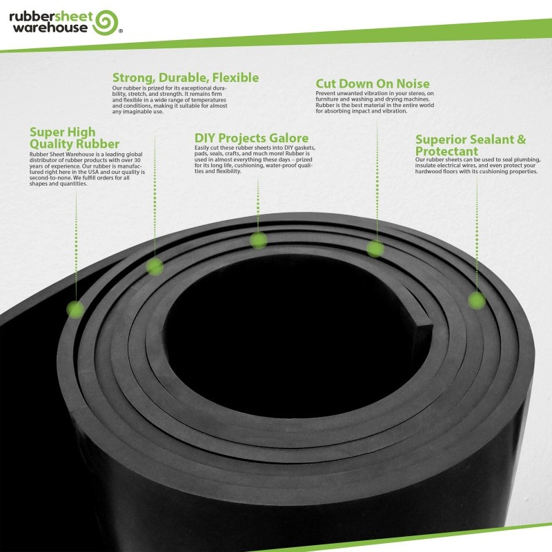 • [Super High Quality Rubber] – Rubber Sheet Warehouse is a leading global distributor of rubber products with over 30 years of experience. Our rubber is manufactured right here in the USA and our quality is second-to-none. We fulfill orders for all shapes and quantities.