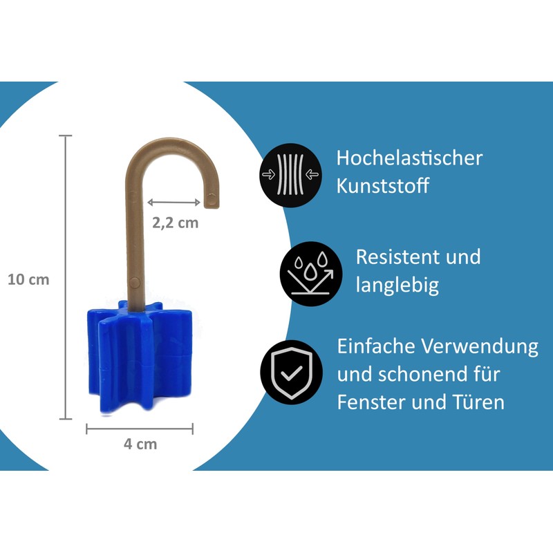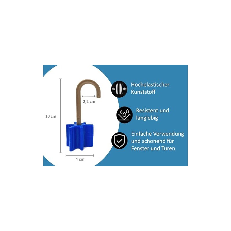 - Special rubber head: the rubber head is made of a highly elastic rubber compound that does not cause scratches and dents. The rubber head ensures gentle cushioning of the windows and doors in the event of wind gusts and returns them back to the starting position thanks to the spring function.