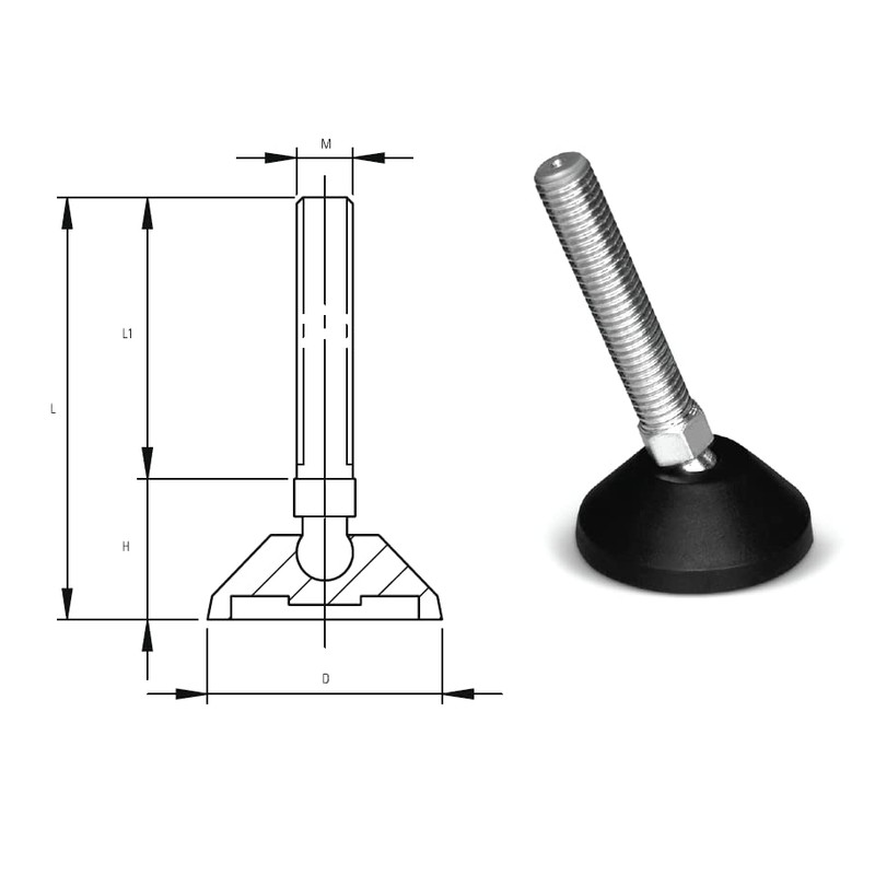 - Thread Size : M12 - Thread Length: 45 x 30 mm (L x H ) - Base Diameter: 50mm - Weight Capacity : 450kg
