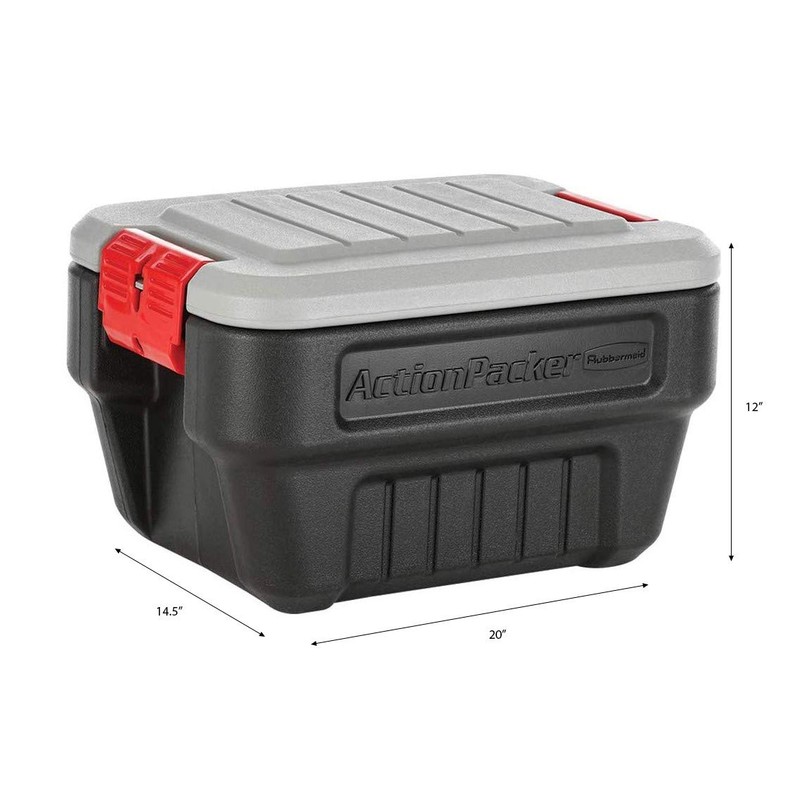 Built for rigorous transport, the Rubbermaid ActionPacker Lockable Storage Box is durable and can withstand everyday use. Made with lockable latches, this storage container will be an organizer for everything from sports equipment to camping supplies or a tool chest. Durable and strong, these storage bins will serve you for a lifetime.