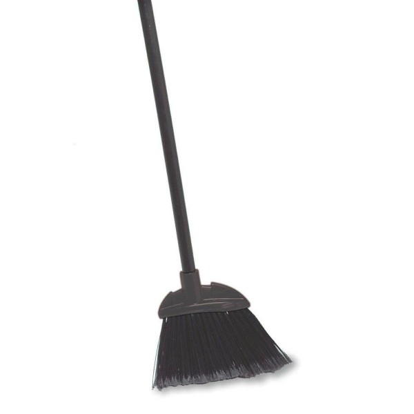 The Rubbermaid FG637400BLA Lobby Broom is a practical tool designed for effective sweeping in various environments. With a length of thirty-five inches, this broom features durable polypropylene bristles that are flagged to capture fine particles. The wood handle is sturdy and allows for one-handed cleaning, which is particularly useful in crowded areas.