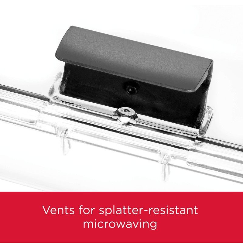 - Built-In Vents: Containers have built-in vents under the latches for splatter-resistant microwaving with the lid on