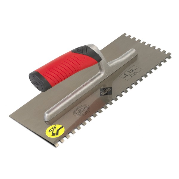 The RUBI 45 Notched trowel 6x6 has an open rubiflex handle and 45 degree angled notches for added comfort and less effort when applying adhesive for wall and floor tiling. The plate is made from carbon steel which is resistant and hardwearing.