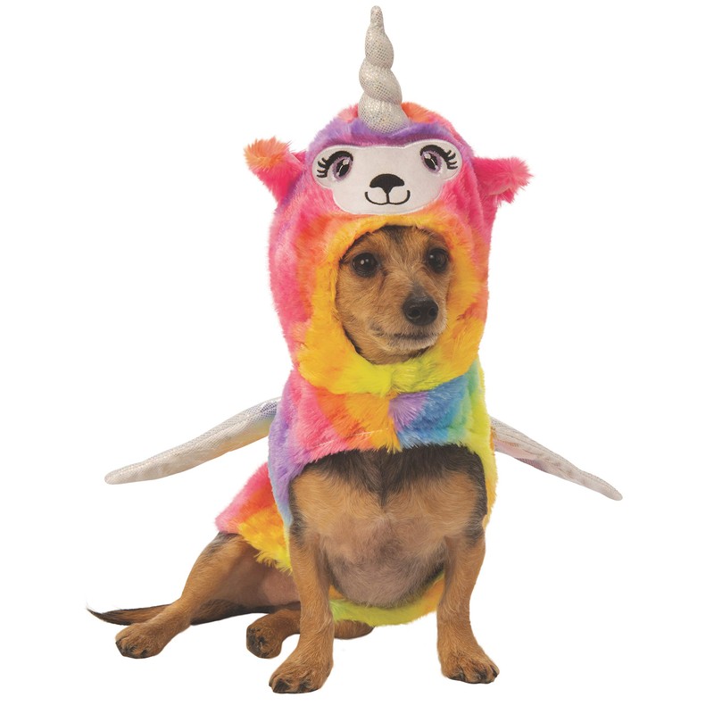 - Llamacorn pet costume hoodie with attached horn and wings