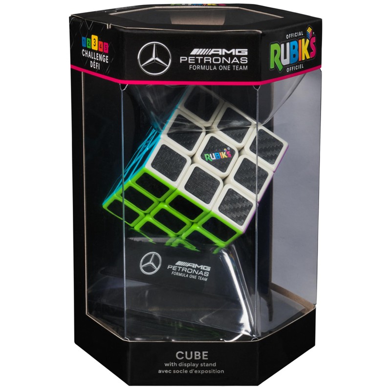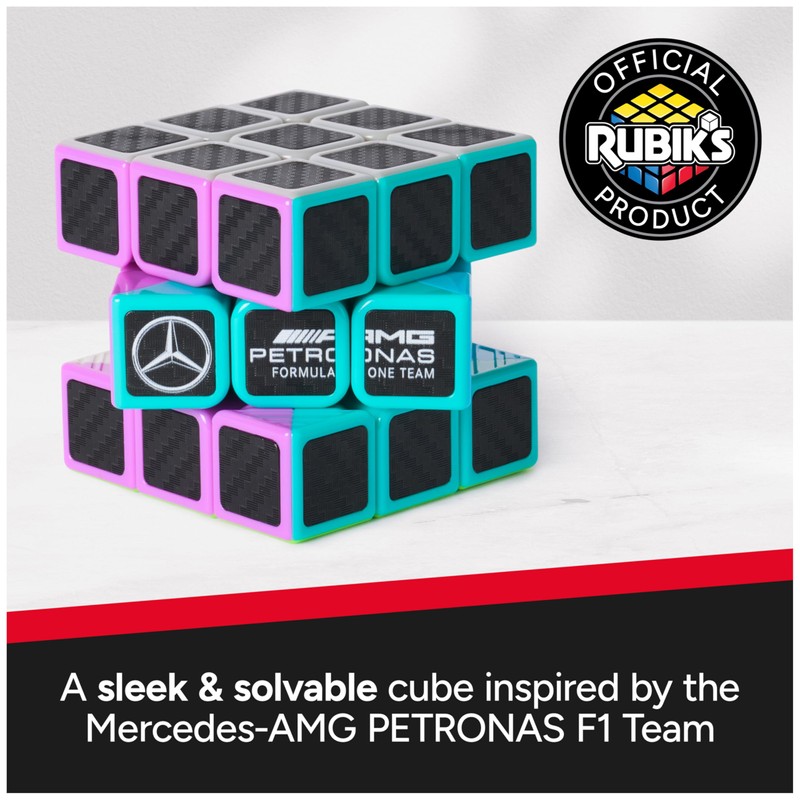 - THE WINNING FORMULA: Made in partnership with Mercedes-AMG PETRONAS F1 Team, this special design of the 3x3 Cube features sleek carbon-fiber-print tiles inspired by Mercedes-AMG PETRONAS F1 Team.