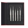 • Includes the following tweezers: 00-SA, 2A-SA, 3C-SA, 5-SA, and 7-SA and a compact case(185 x 140 x 20mm) weighing 100 grams empty.