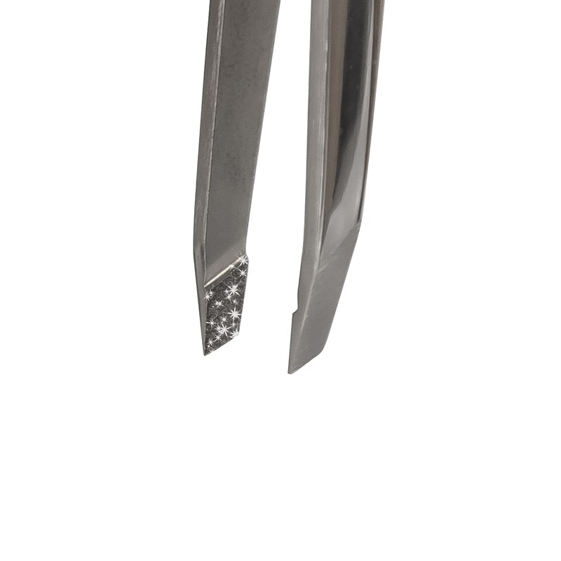 Rubis Classic Diamond Coated Tip, Stainless Steel Slanted Tweezers for Precise Eyebrows and Hair Removal, The Precious Stone Collection,1K102DT, Polished Silver
