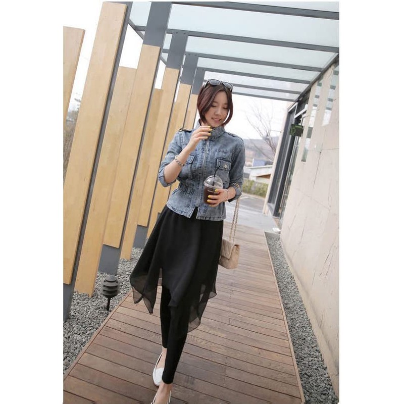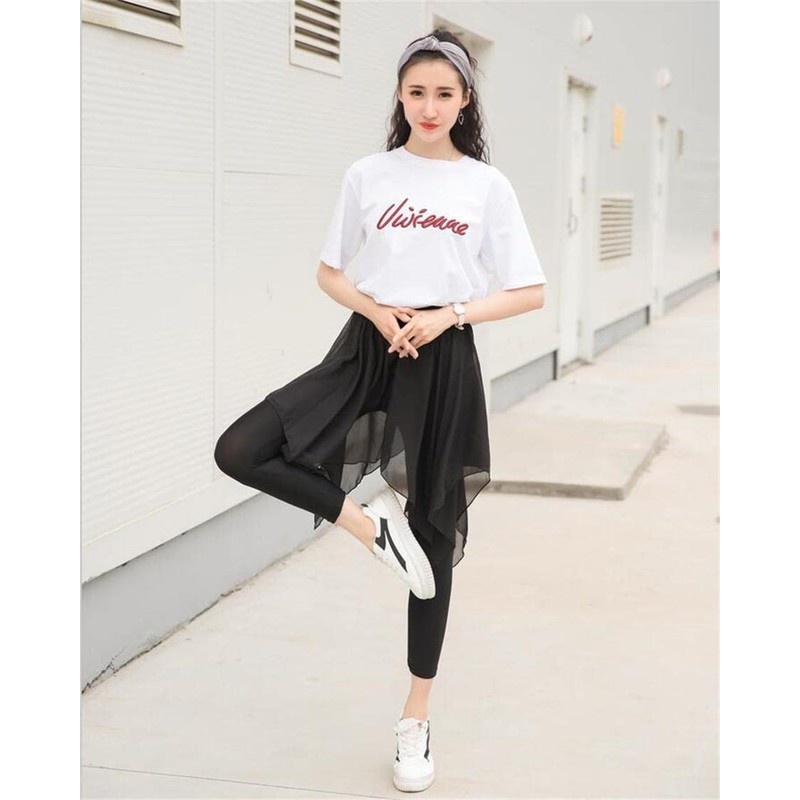 - Long length women's skats with cute feminine lines that integrate with leggings tights