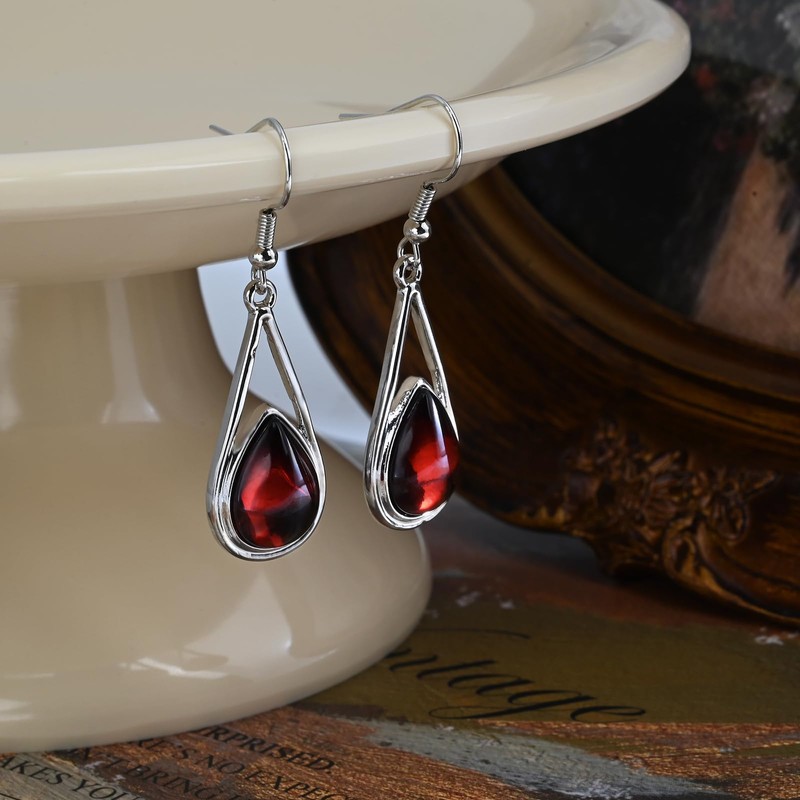 - [High Quality] These teardrop earrings are made of garnet and high-quality alloy. Their surface undergoes an advanced electrification process, making them highly resistant to falls. Additionally, they are 100% free from BPA, nickel, cadmium, and lead, making them hypoallergenic and safe for your skin