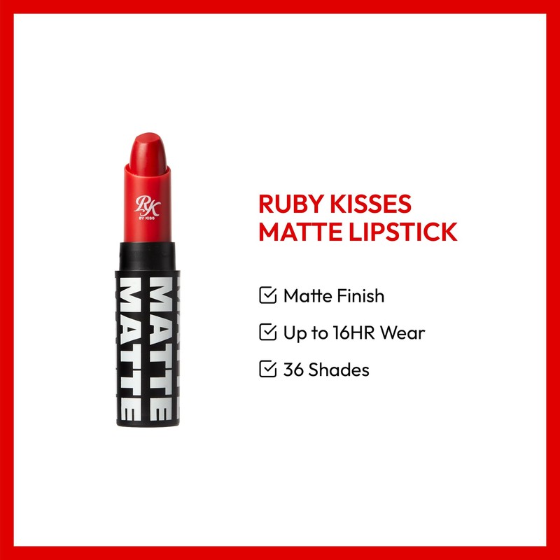 Ruby Kisses Lipstick, Matte Finish, Long-Lasting, Highly Pigmented, Smooth Ap...