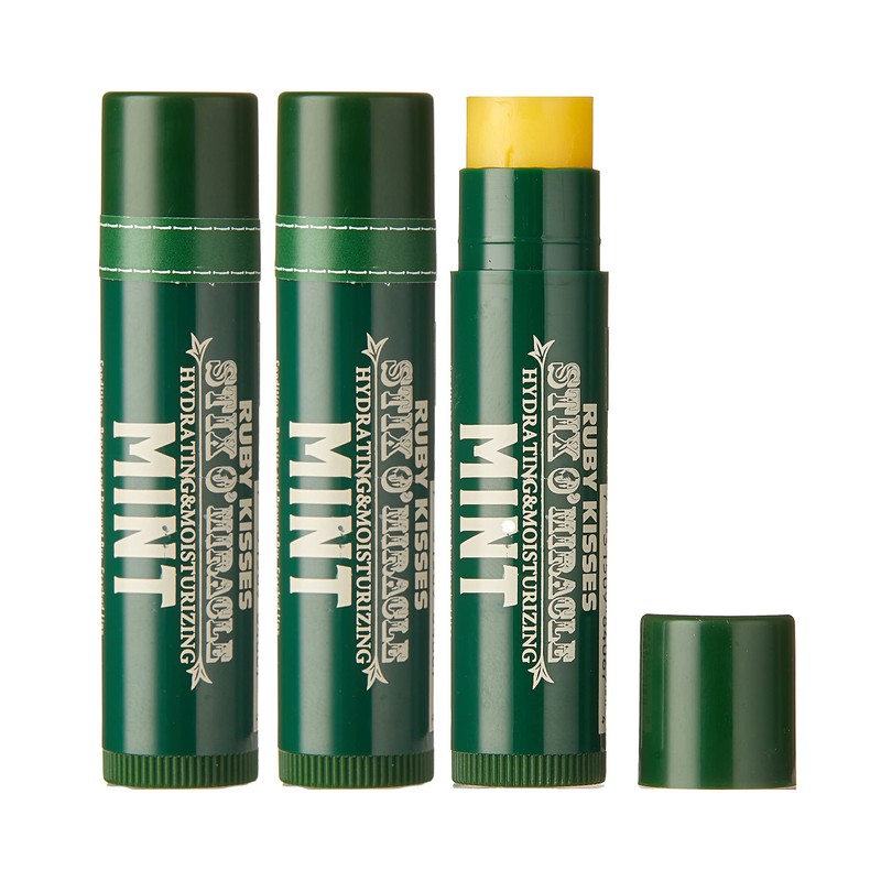 Ruby Kisses Stix O' Miracle Lip Balm, Maximum Strength Lip Revitalizer (Mint, 3 Count)