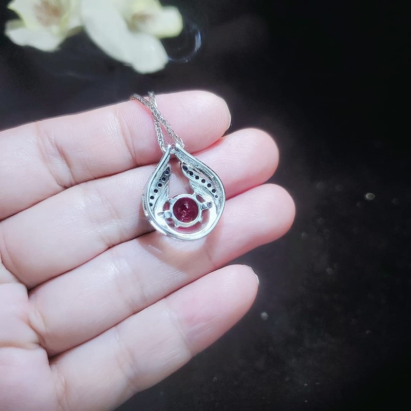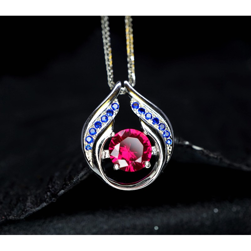 Ruby Necklace Hold Your Heart Style Sterling Silver Blue Sapphire Wing Jewelry 18kgp 8mm 2 CT Round Cut Lab Ruby Pendant 18"+2"