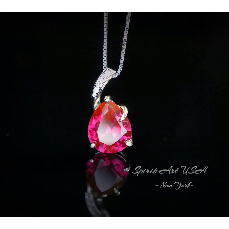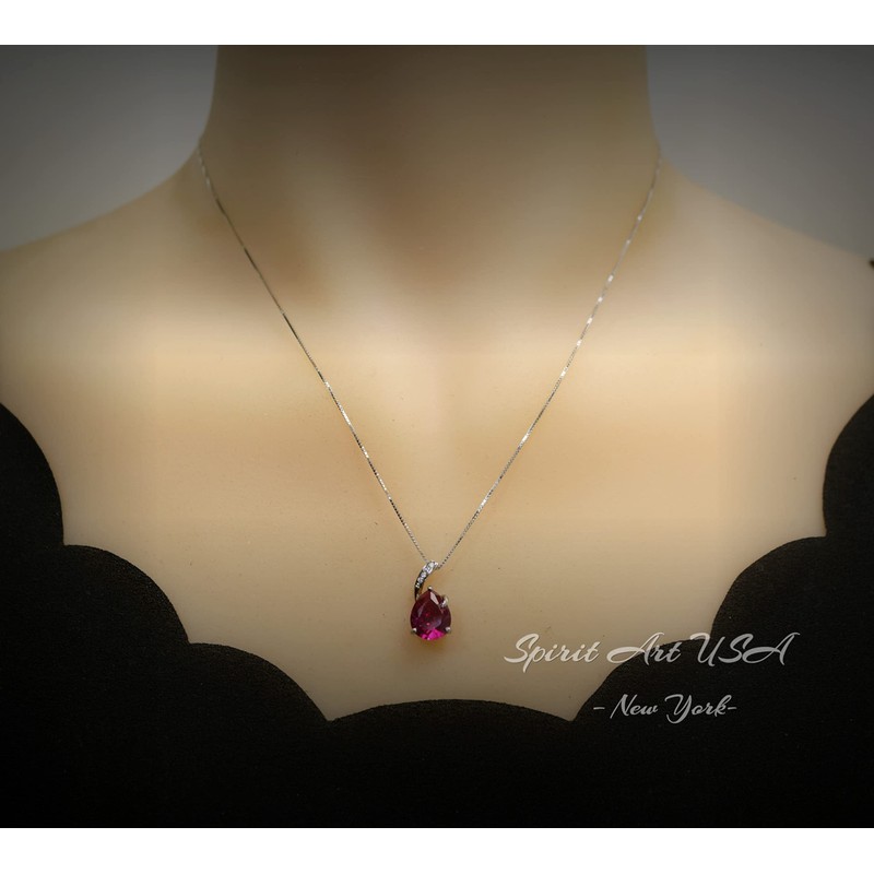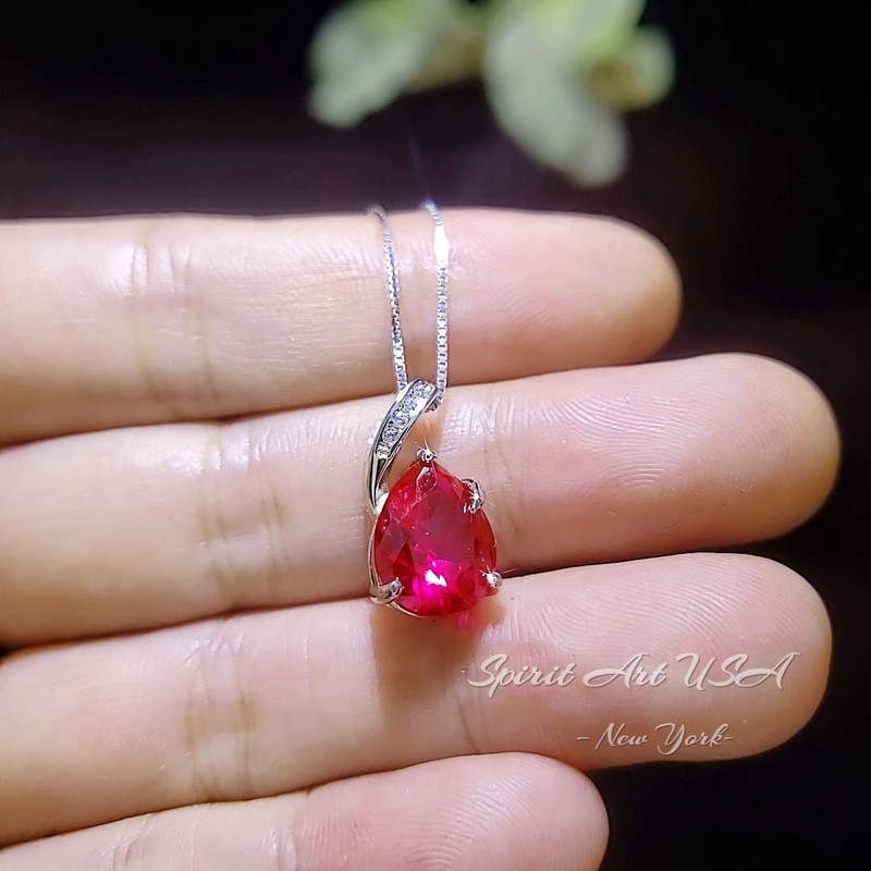 Ruby Necklace Sterling Silver - Large Simple Teardrop Cut Created Ruby Pendant - 3.5 CT Made in USA White gold coated
