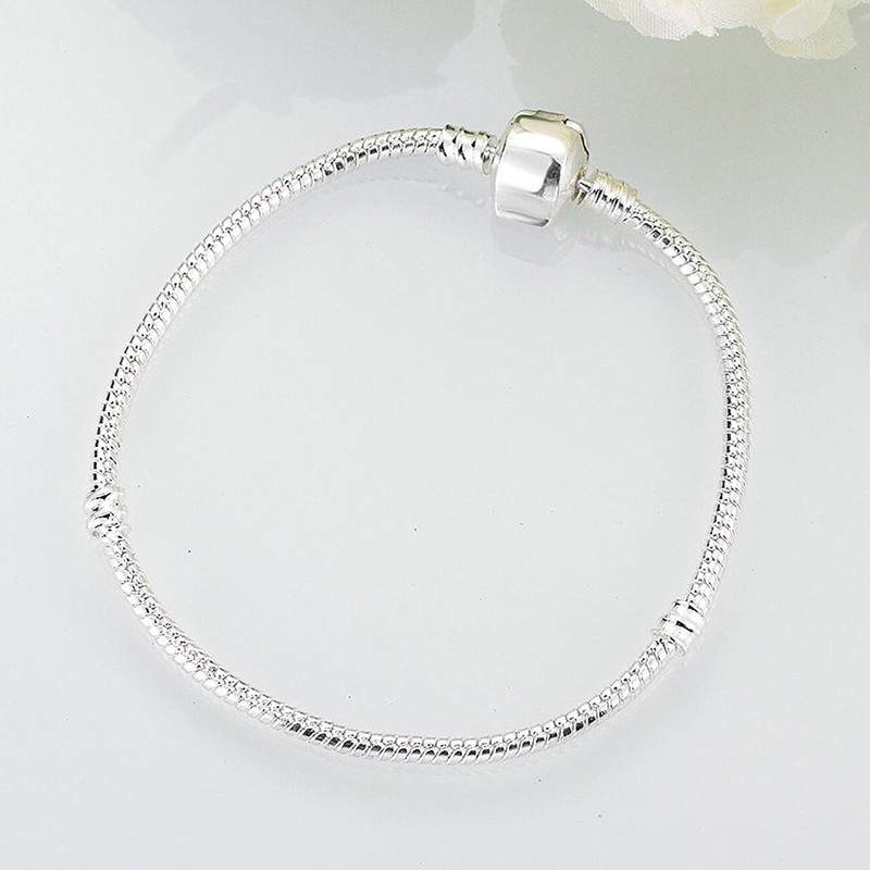 RUBYCA European Style Snake Chain Charm Bracelet with Barrel Clasp