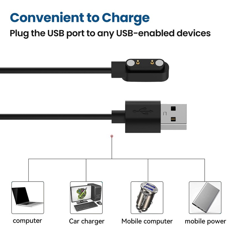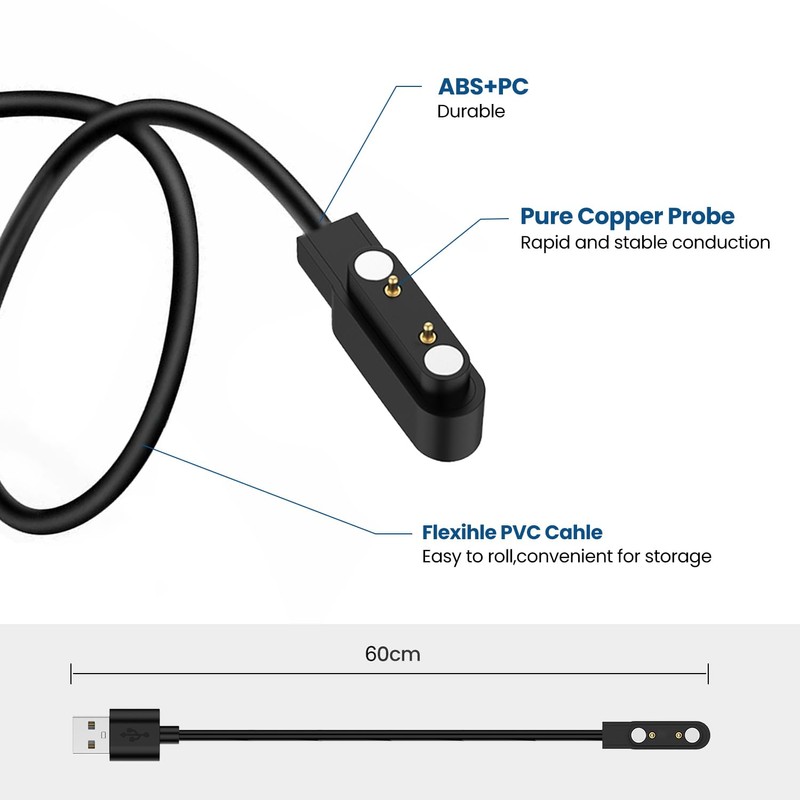 RuenTech 2-Pack Chargers Compatible for OYV TGW008 TGW101/JeeJTek TGW008 TGW101 Smart Watch Charger, Replacement Charging Cable for OYV& JeeJTek Smart Watch Charger Magnetic, 60cm (Black&Black)