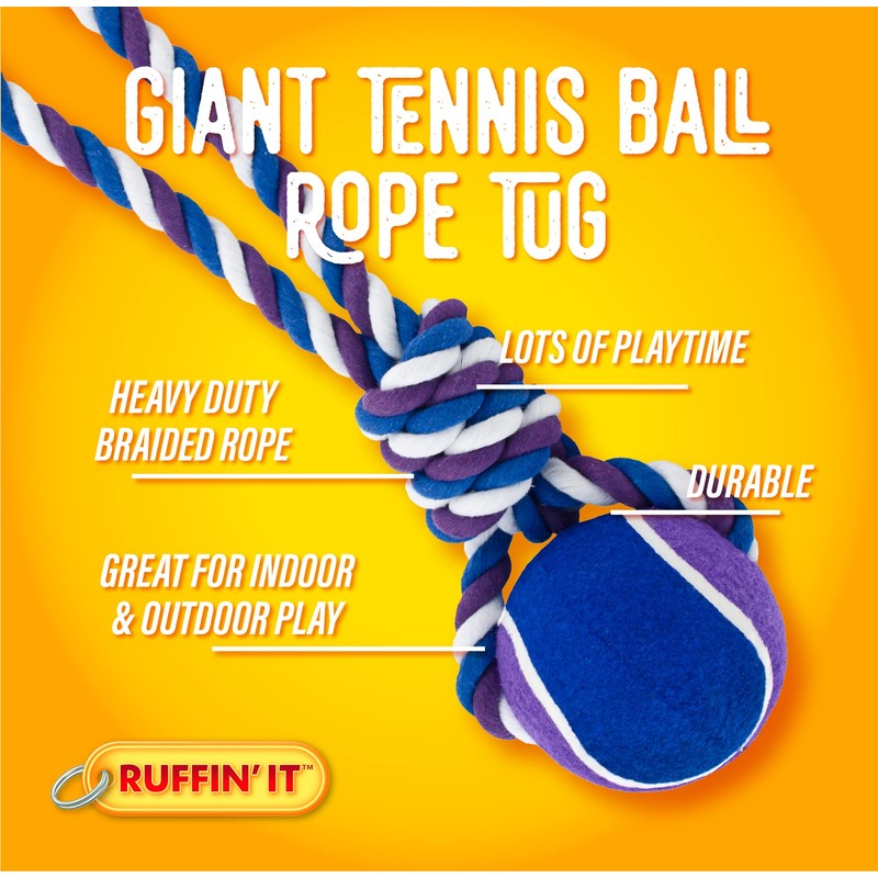 - INNOVATIVE MATERIALS - Made with a heavy duty braided rope for durable, long-lasting fun, and an oversized tennis ball that's sure to grab your pup’s attention, your dog will love tugging, catching, and playing with this toy.