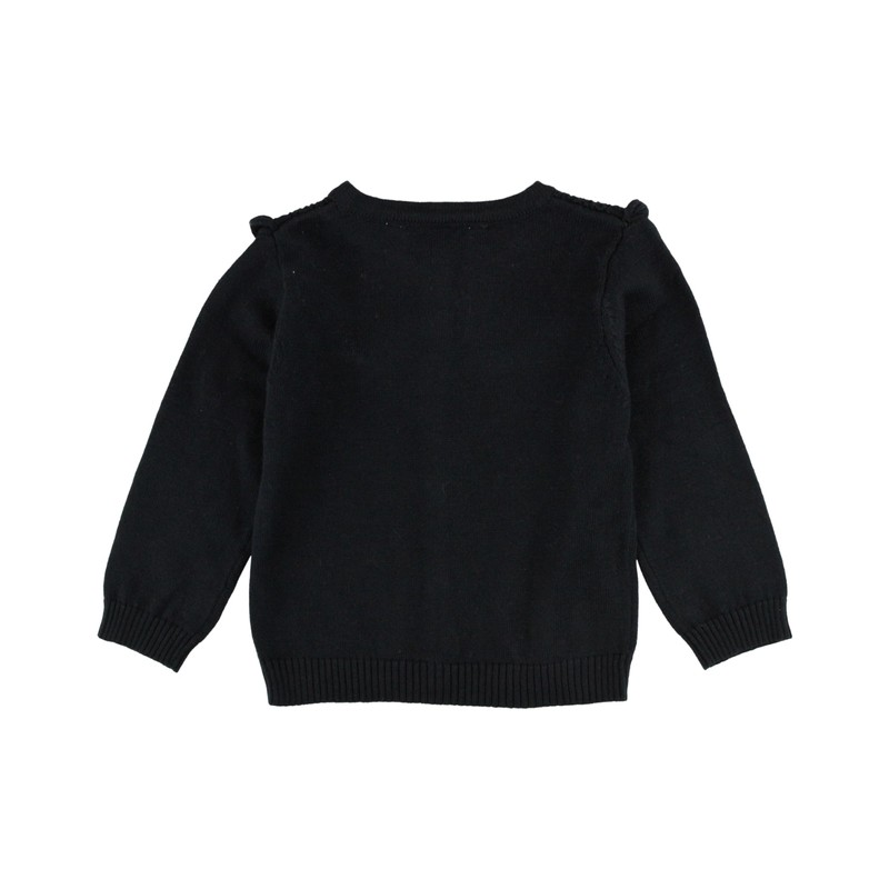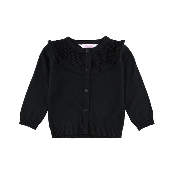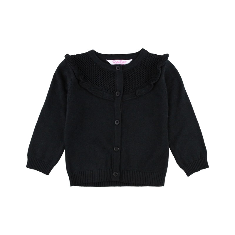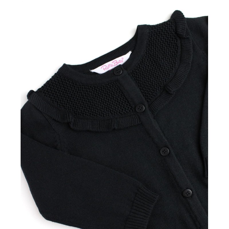RuffleButts Black Sweater Knit Ruffle Trim Cardigan - 6-12m
