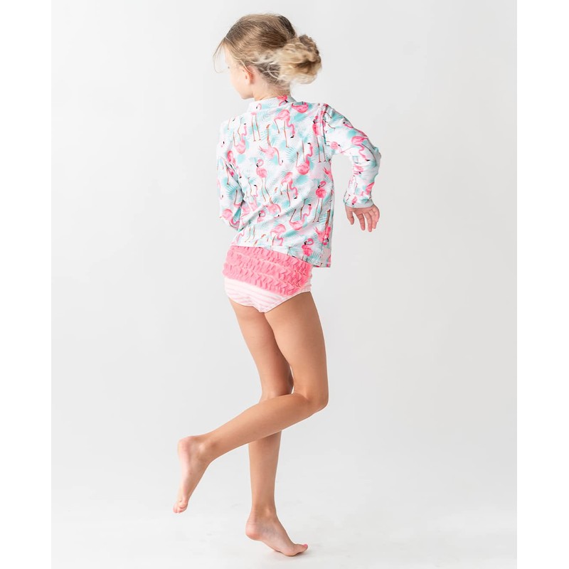 - Protección solar integrada: no más lágrimas Mantén la delicada piel de tu niña segura al sol con RuffleButts. Nuestra colección de natación cuenta con UPF 50+ integrado, por lo que hay más juego y menos preocupación por los rayos UV agresivos.