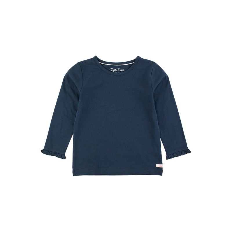 RuffleButts Dark Navy Knit Long Sleeve Ruffle Layering Tee - 5
