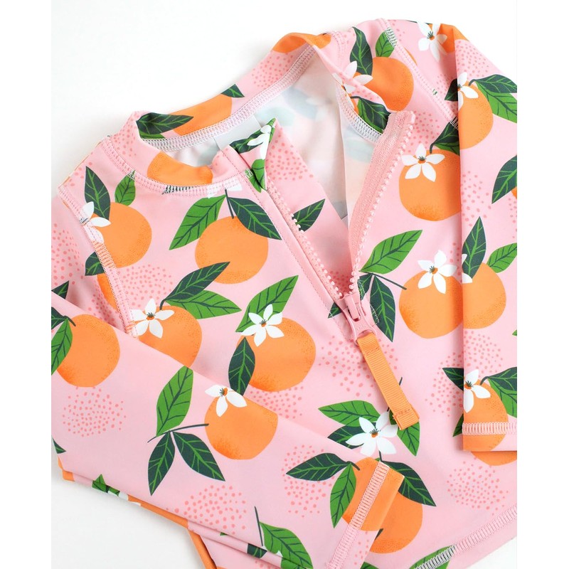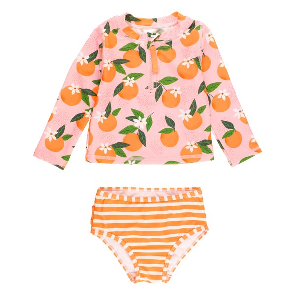 RuffleButts Orange You The Sweetest Long Sleeve Zipper Rash Guard Bikini - 6