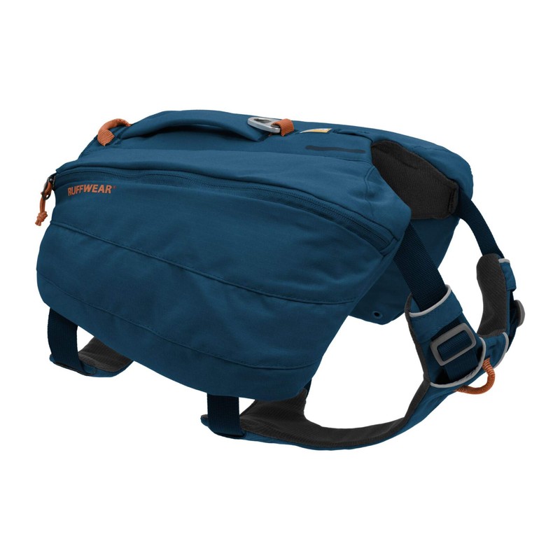 - Box contents: 1 x Ruffwear dog backpack. Capacity: 4.5 L, Weight: 320 g, Materials: 300 Denier Polyester Ripstop, Colour Blue Moon. Hand wash with mild detergent, air dry