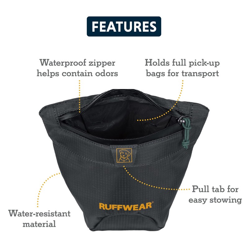 - RUFFWEAR Pack Out dog poop bag holder: A convenient solution for carrying full dog poop pick-up bags hands-free between drop points. Can also be used as a dog treat pouch or mini bumbag for essentials