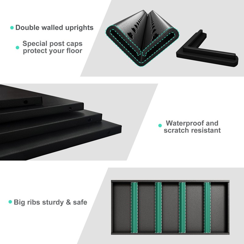 - 【Rustproof&Super Sturdy】Compared with wooden storage racks, the metal shelving with anti-rust powder coating are more reliable and rust-proof without worrying about deformation.The top / bottom caps are covered on the post to protects your floor from scratches.