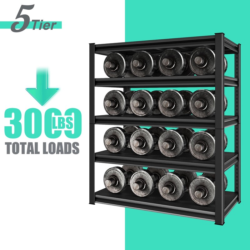 Rufokisa 48" W Garage Shelving Heavy Duty, 3000LBS Loads Adjustable Garage Storage Shelves,5-Tier Metal Storage Racks and Shelving Units, Utility Rack Shelves,48" W x 24" D x 78" H,Black