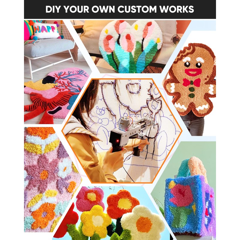 - ✂【Tufting Gun Kit】: This tufting gun starter kit includes a tufting gun, 20 rolls of yarn, a piece of 40" x 40" primary tufted cloth, a threader, and other handy tools to adjust the device.