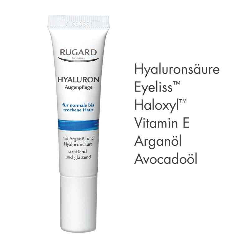 - RUGARD Hyaluronic eye care provides invigorating moisture, efficiently combats the first signs of skin ageing and reduces dark circles and bags under the eyes
