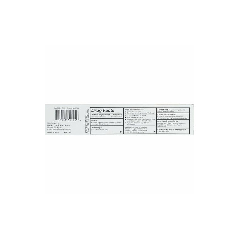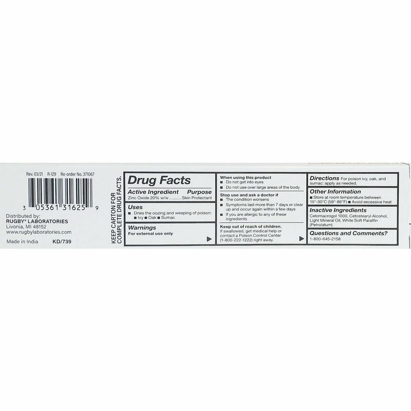 Rugby Zinc Oxide Ointment 20% is a skin protectant designed to soothe and shield irritated or sensitive skin. Formulated with 20% Zinc Oxide, this ointment forms a protective barrier to help heal minor cuts, burns, scrapes, and diaper rash. It also helps prevent moisture loss and protects the skin from chafing and irritation. Ideal for daily use, this gentle and effective formula is perfect for treating and preventing skin discomfort.