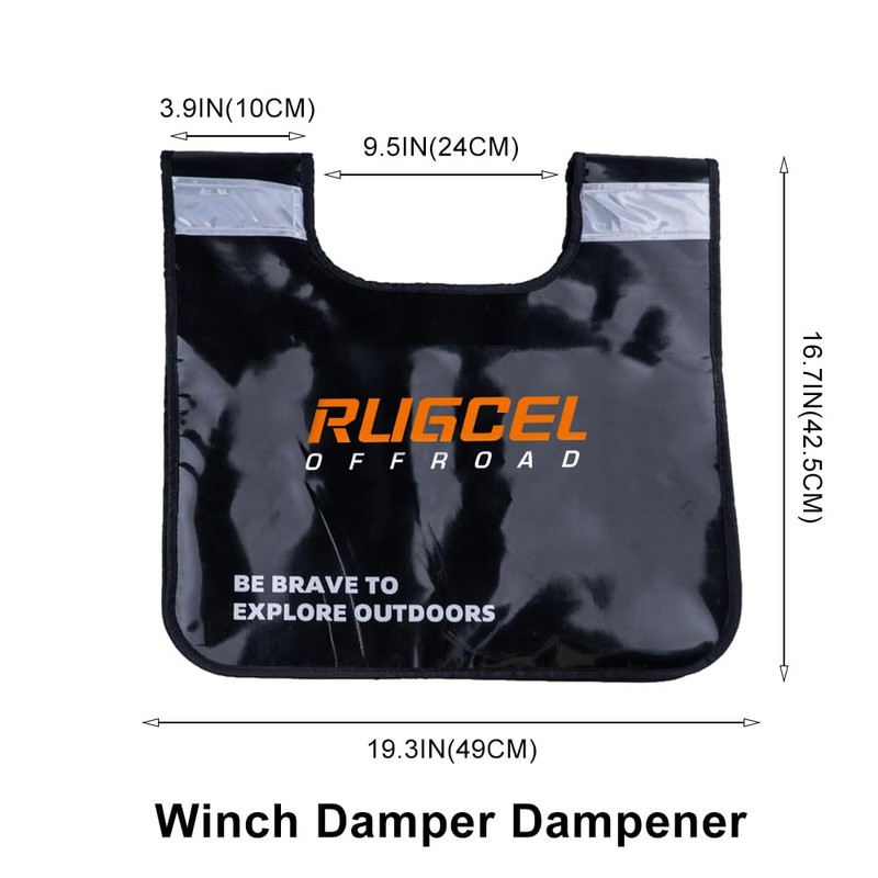 - 【RUGCEL Recovery Rope Kit includes】1in×30ft kinetic recovery rope (rated at 30360 pounds), 1pair of heavy-duty gloves,1x winch Line Cable Damper, 1pair of 3/6×20 inch soft shackles, and 1x 66000 pound recovery ring,1x storage bag.